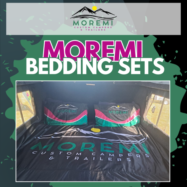 Sleep in comfort and style with the Moremi Trailers Queen-Sized Bedding Set, perfect for your trailer adventures or home use. Designed for durability and soft comfort, this set features a sleek design proudly branded with the Moremi Trailers logo.